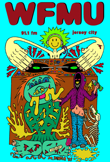 The WFMU poster art above is a brand new drawing by Mike Diana, the cartoonist jailed for his comics in the grand state of Florida. His comics are not for the feint of heart. Children under 17 should not click below. |